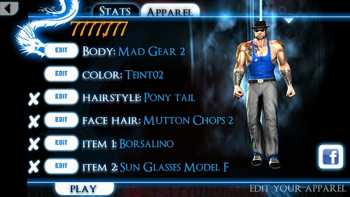 -可选12种独特斗士或借助个性极强的编辑器创造属于自己的斗士(特征:面部、肤色、体重、服装、配饰等等):自定义系统支持上千种组合,让每个玩家都能打造独一无二的角色形象。