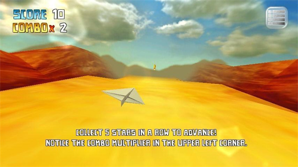 1、玩家需要通过重力传感器控制纸飞机飞行。游戏提供了多种灵敏度设置,玩家可以根据自己的习惯调整操控手感,无论是喜欢细腻操控还是大开大合的风格都能找到合适的设置。