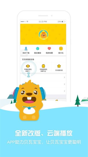 贝瓦宝宝APP邀请知名儿童主播"亚明哥哥"、"晓华亲子英语"等专业人士加盟,打造高品质早教内容。应用支持与贝瓦智能故事机无缝连接,通过蓝牙实现双向互动控制,让学习体验更加生动有趣。家长可以在"船长铺子"专区选购经过严格筛选的益智图书、教具和生活用品,所有商品都由育儿专家"船长杨大叔"亲自推荐。APP还提供个性化内容推荐功能,根据孩子年龄和兴趣智能匹配适合的学习资源,让早教更精准高效。