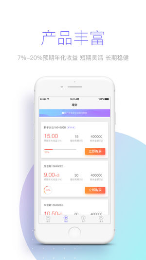6、收益可观:年化利率9%-15%区间,显著高于传统银行理财产品,且全程交易免手续费;
