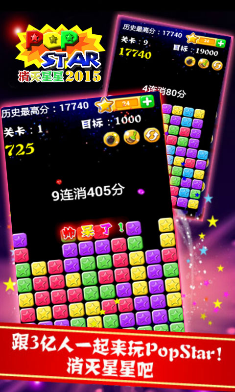 《消灭星星2015》重磅升级,带来前所未有的消除体验!这款风靡全球的经典消除游戏以全新面貌登场,不仅保留了原版的核心乐趣,更在玩法、画面和奖励系统上全面升级。游戏采用创新的消除机制,搭配清新唯美的星空主题画面,让玩家在指尖滑动间享受视觉与操作的双重盛宴。无论是休闲放松还是挑战高分,都能找到属于自己的游戏乐趣。全球超过十亿玩家的选择,证明了这款游戏的非凡魅力,现在加入还有机会赢取豪华实物大奖!