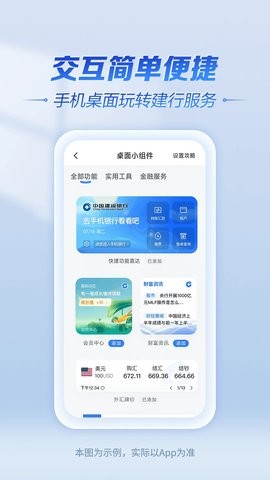 【基金投资】全新推出FOF专区、主题专区和建行心选专区,提供专业投研报告和智能选基工具。新增基金组合推荐功能,根据用户风险测评结果匹配适合的产品组合。