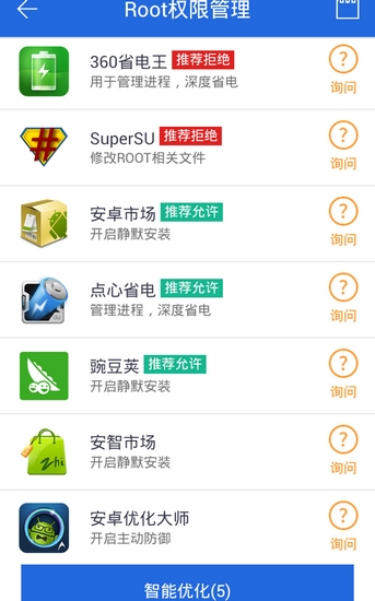 超级root大师的主要特点包括:1.完善的ROOT权限守护机制,确保权限安全稳定。2.强大的隐私保护功能,防止恶意软件扣费和窃取信息。3.智能的自启动管理,有效控制后台程序,节省电量和流量。4.通知栏管理功能可以让通知界面保持整洁。5.系统默认设置保护功能防止应用擅自修改系统配置。6.静默短信拦截功能可以避免恶意程序偷偷发送付费短信。7.文件管理和应用管理功能让用户对设备拥有完全控制权。