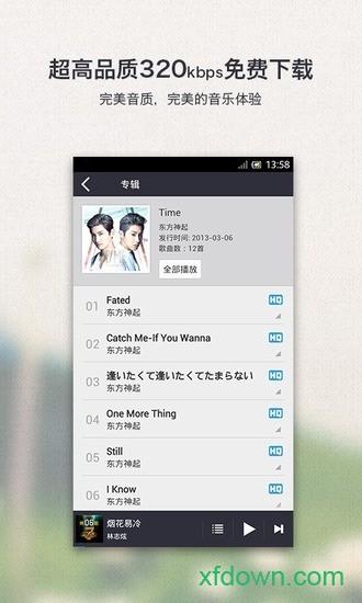 2.支持320kbps超高品质歌曲下载,采用专业音频编码技术,为你的耳朵带来极致享受。