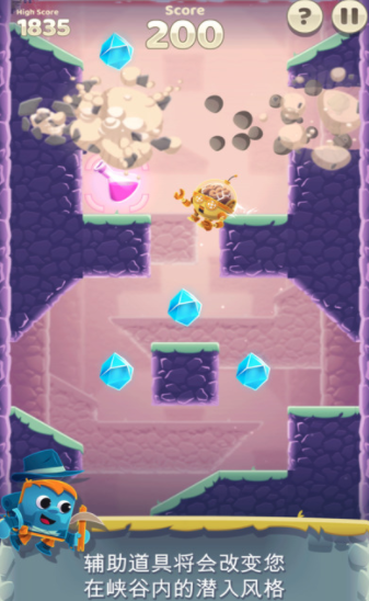 3、灵活应对复杂地形:在移动的障碍线间巧妙躲避、精准挖掘或快速潜入,确保你的下降路线畅通无阻。游戏考验玩家的反应速度和操作技巧。
