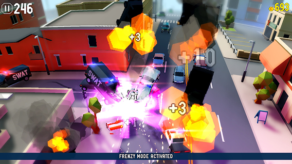 当然,那些追捕你的警察和军队可不只会追着你。他们会在道路上设置路障,有时是一两辆车横在路中间,又或者是一辆车配一个钉刺带,还会有两辆军车拦在你的面前,如果你的运气够好的话,还会有坦克向你开炮。不过,你可以选择一条路来避开他们,真正的威胁是天空中的直升机。学会预判警察的行动路线和及时改变逃跑策略是成功逃脱的关键。
