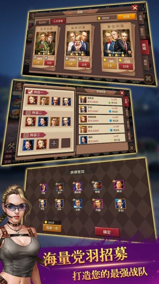 3、海量党羽招募系统收录了超过200位各具特色的政治人物,每位都有独特的背景故事和能力,打造您的最强战队;
