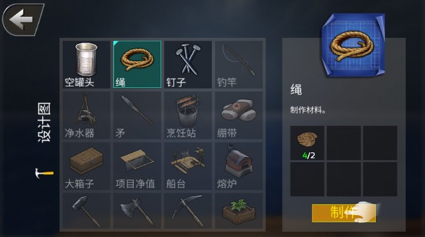 2、利用大量的配方制作广泛的制作系统。游戏包含上百种可制作物品,从简单的鱼叉到复杂的净水装置。制作系统采用渐进式解锁机制,随着生存天数的增加,玩家可以学习到更多高级配方。每个配方都需要玩家亲自收集材料并完成制作过程。