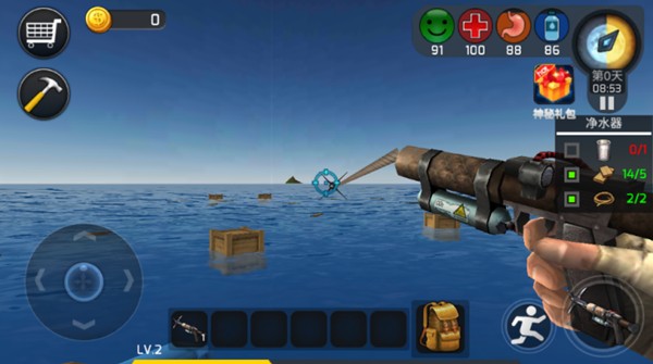 2、经典沙盒元素通过创建各种在模拟世界情况下有用的设备和道具来帮助您生存。游戏完美融合了生存与建造元素,玩家可以自由发挥创意,设计独特的生存方案。比如建造可移动的捕鱼平台,或是设计自动收集漂浮物的装置。