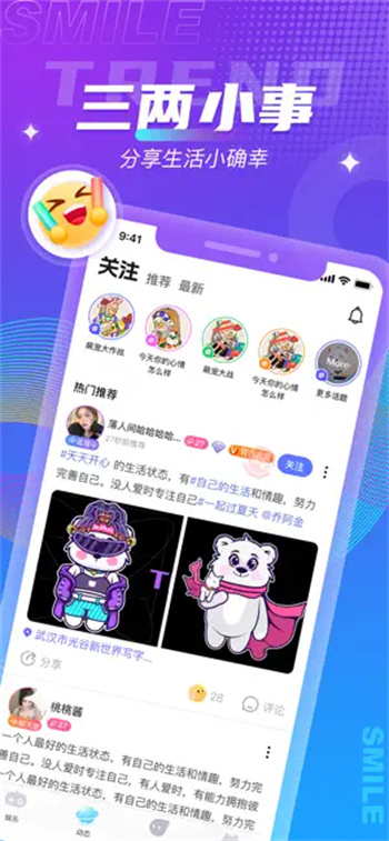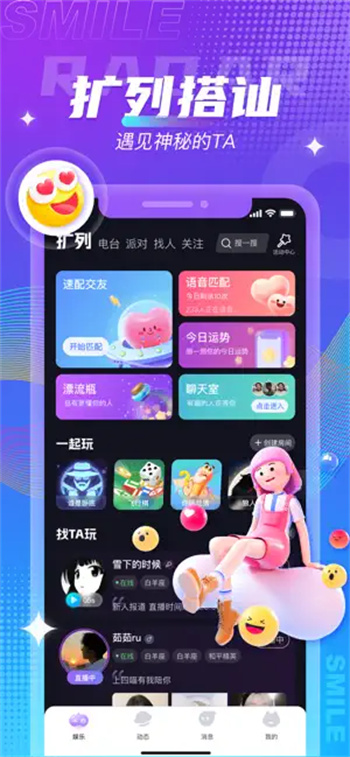 3. 平台每天推出不同主题的社交活动,从深夜故事会到晨间音乐分享,从游戏组队到兴趣小组讨论,总有一款适合你。这些丰富多彩的互动形式,让用户告别孤独,在欢声笑语中发现更多有趣的灵魂,拓展自己的社交圈层。