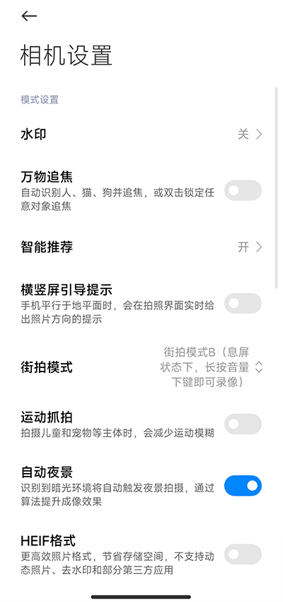 5、在设置菜单中滑动查找"街拍模式"选项,选择"街拍模式B"进行启用。成功激活后,即使在手机屏幕关闭的状态下,只需长按音量减键即可立即开始视频录制,这个功能特别适合需要快速捕捉瞬间的场景使用。