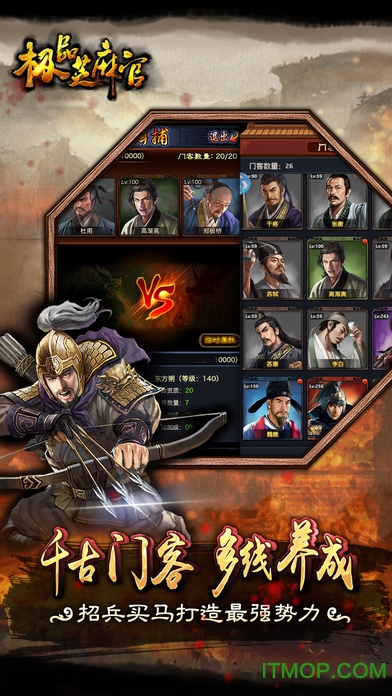 数十位历史上有名的谋士、武将悉数登场,每位门客都拥有独特的技能和特长。玩家需要合理搭配门客阵容,应对朝堂上的各种挑战。门客之间还会产生互动剧情,为游戏增添更多趣味性。