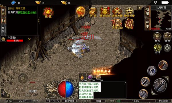 1、模式:游戏采用创新的无职业系统,打破了传统职业限制,让玩家可以自由搭配技能组合,创造出独一无二的战斗风格。这种设计让每场战斗都充满变数,完美还原了传奇游戏最原始的战斗乐趣。