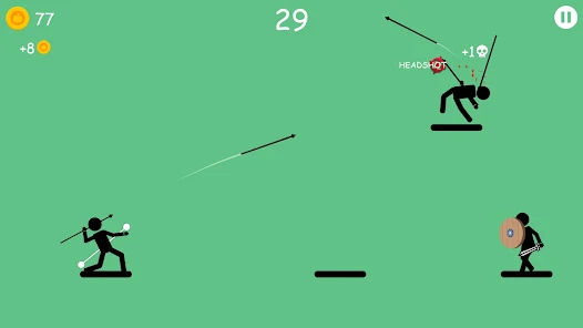 1、游戏采用刺激的投矛射击玩法,玩家需要瞄准敌人进行精准投掷,在激烈的对决中消灭对手取得胜利。多种战斗场景和敌人类型让每场对决都充满新鲜感。