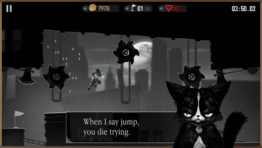 《她想我死》是一款风格独特的横版跑酷类手机游戏,最初在PS4平台推出后广受好评,现已登陆移动端。游戏中玩家将扮演倒霉的主人公马克斯,因惹恼了自家傲娇的黑猫卢拉而陷入致命危机。这只记仇的猫咪精心布置了各种致命陷阱,誓要置主人于死地。游戏采用复古的黑白画风,搭配紧张刺激的背景音乐,为玩家带来别具一格的跑酷体验。无需联网即可畅玩的特性,加上丰富的关卡设计和趣味十足的玩法,让这款游戏成为休闲娱乐的绝佳选择。