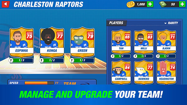 3、除了即时对抗玩法,游戏还提供丰富的球队经营系统,玩家可以招募不同特长的球员,通过训练提升他们的速度、力量等属性,打造独具特色的冠军队伍,体验从菜鸟到强队的完整成长过程。
