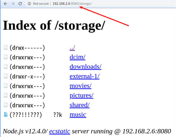 举例来说,手机的局域网 IP 是 192.168.2.6,那么我们通过桌面电脑的浏览器访问https://192.168.2.6:8080,就可以看到 Termux 的根目录了。进入下面的storage子目录,就可以下载手机文件了。