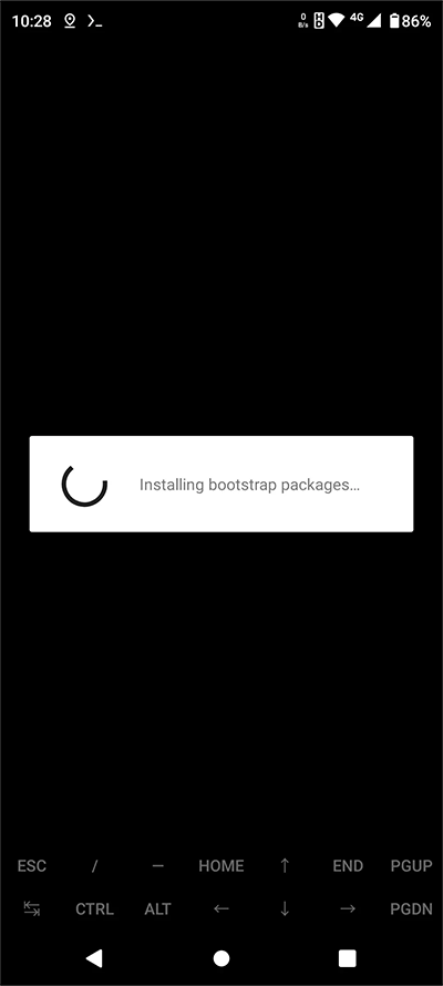 等待 Installing bootstrap packages (安装引导程序包)结束后可看到 Termux 的欢迎界面,如下图。