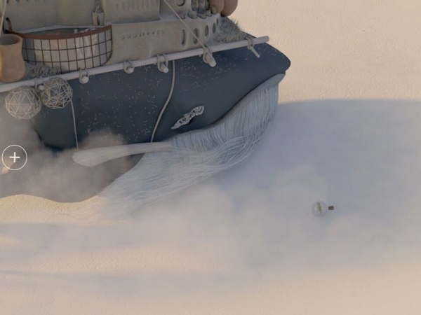 2、玩家将跟随一只踩着高跷的老鲸鱼,在广袤的沙漠中寻找消失的海洋,感受生命的不屈与顽强;