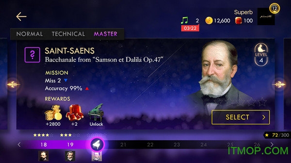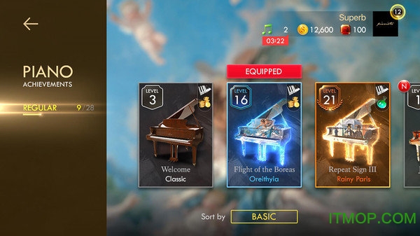收集播放:通过完成各种演奏任务积累金币,玩家可以解锁更多珍藏曲目。每首解锁的曲目都会附带详细的创作背景介绍,让玩家在游戏之余也能了解古典音乐的发展历史。