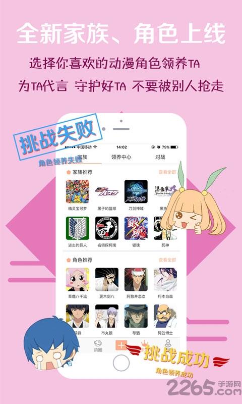动漫角色对战:如果你心仪的角色被其他用户领养了,不要灰心!你可以发起挑战,通过答题、投票等方式争夺角色的领养权,让二次元世界更加热闹有趣。