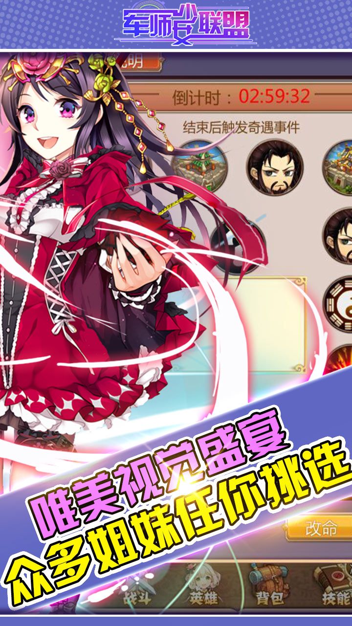 《军事少女联盟》是一款以三国为背景的萌娘养成战斗手游,游戏将经典三国人物进行二次元萌娘化设计,每位角色都拥有独特的个性与造型。玩家可以自由招募上百位萌娘武将,组建专属军团参与热血战斗。游戏采用创新的立绘式战斗模式,搭配丰富的剧情关卡和PVP玩法,让玩家在享受策略对战乐趣的同时,还能体验收集养成的成就感。无论是Q萌的人物立绘,还是炫酷的战斗特效,都能带给玩家视觉与玩法的双重享受。