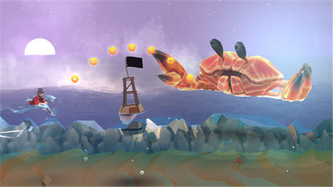 1、游戏为玩家提供了高度自由的玩法设定,通过精准的跳跃、灵活的转向等操作来躲避珊瑚礁、漩涡等多样化的海洋障碍物,考验反应能力。