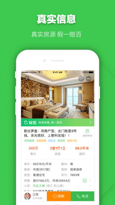 海量房源:安居客覆盖全国70个大中城市90%以上的新房、二手房、租房房源信息,为用户提供全面的房产服务。平台不仅提供基础房源信息,还包括楼盘动态、团购报名、看房团报名、独家楼盘折扣等增值服务。特别在北京、上海、广州、深圳等一线城市,安居客拥有高密度的二手房、租房、楼盘、商业地产信息,一个app就能掌握全城房产动态。