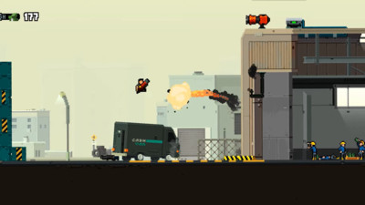 3、横版射击游戏,枪的射击很过瘾…嗯…很有手感。无论是武器的后坐力还是子弹的轨迹,都经过精心调校,让玩家感受到真实的射击体验。