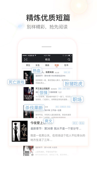 1.海量小说资源:与1000余家出版社和文学网站达成战略合作,收录正版小说超过80万册,每日更新3000+章节。特别设立新书首发专区,让您第一时间读到最新作品。