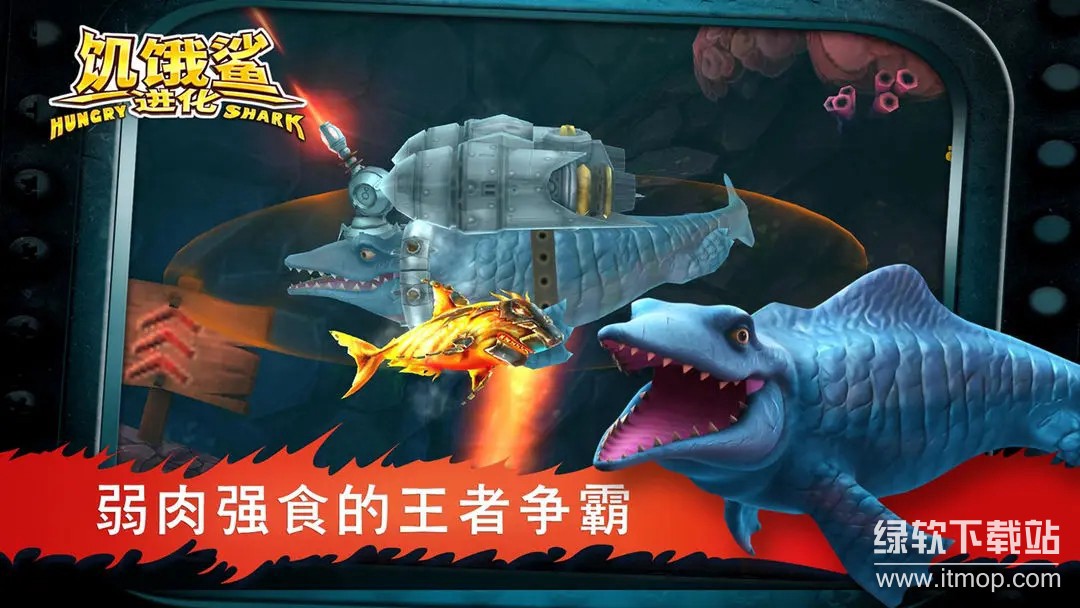 《饥饿鲨:进化》是一款充满刺激与挑战的海洋生存游戏,玩家将从一条弱小的鲨鱼开始,通过不断吞噬鱼类、人类甚至船只来成长壮大。游戏提供了30多种独特的鲨鱼种类,包括巨齿鲨和机械鲨等,每种鲨鱼都拥有不同的能力和外观。玩家可以探索多样化的海域,挑战强大的BOSS如螃蟹王,体验"淘金热"等特殊玩法带来的高分快感。游戏采用生动的卡通渲染风格,细致展现了深海的光影效果和生物细节,支持离线单机游玩,但部分内容需要通过内购解锁。