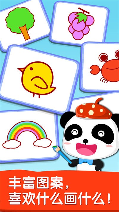 1.【海量画板】:游戏内置数百种精美图案模板,从可爱动物到日常用品,从童话角色到交通工具,应有尽有。这些图案都经过专业儿童教育专家精心挑选,符合孩子的认知水平和审美趣味,让宝宝每次打开游戏都能发现新的惊喜。模板库还会定期更新,确保孩子们永远保持新鲜感。