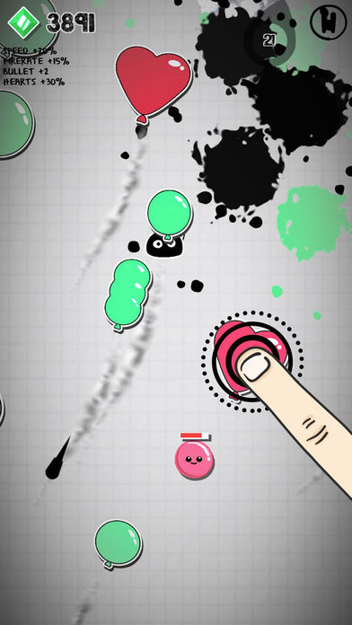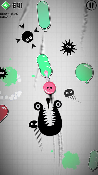 控制一个可爱的粉色橡胶球,在令人耳目一新的手绘画风中黏住气球,弹射,收集战利品并升级各种能力,击败最终boss!每一关都需要收集3颗星星并战胜一个大boss,当然过程不会那么轻松,boss的火力全开以及小煤球们的穷追不舍,你准备好了吗?这款游戏将休闲与挑战完美结合,简单的操作背后是深度的策略玩法,可爱的画风下隐藏着极具挑战性的关卡设计,绝对能带给玩家难忘的游戏体验。