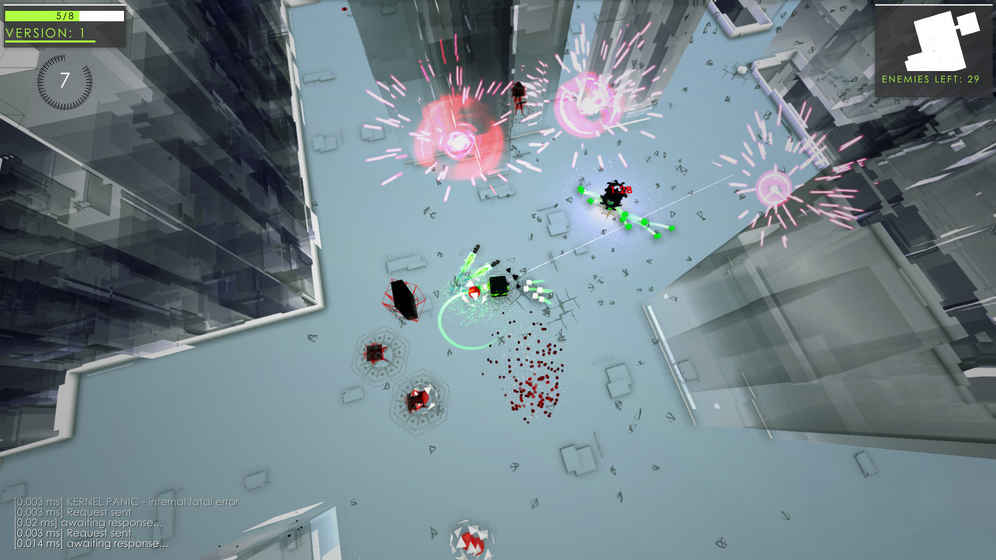 4、攻克7层关卡,各层关卡都是由程序自动生成的世界。每次进入游戏都会面对全新的地图布局和敌人配置,确保游戏体验永不重复。从简单的数据通道到复杂的核心处理器区域,每个关卡都呈现出独特的视觉风格和游戏机制。