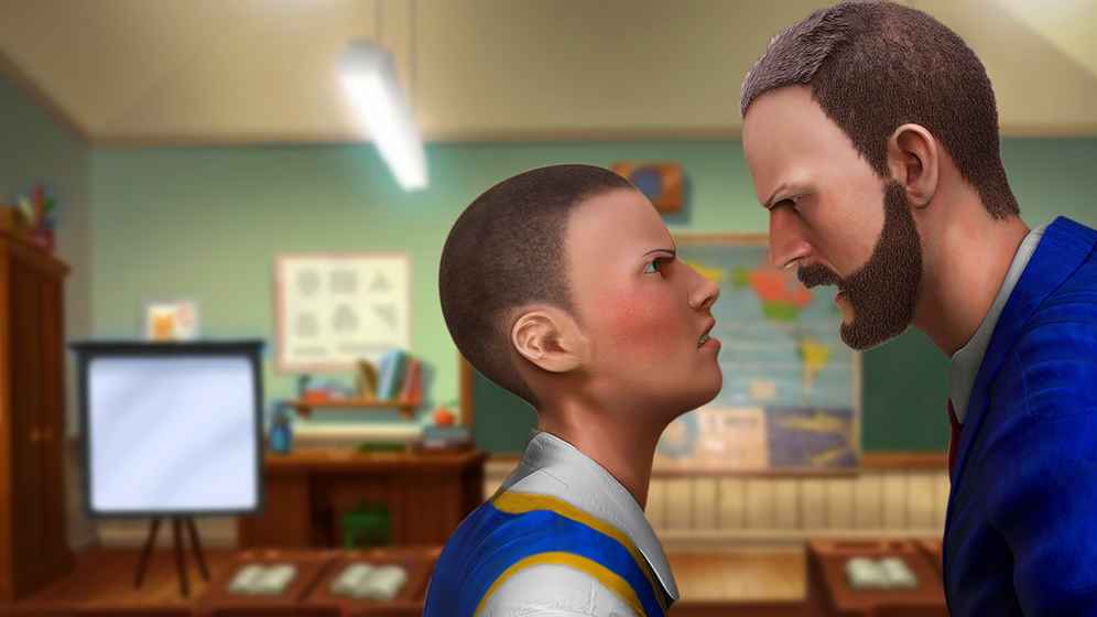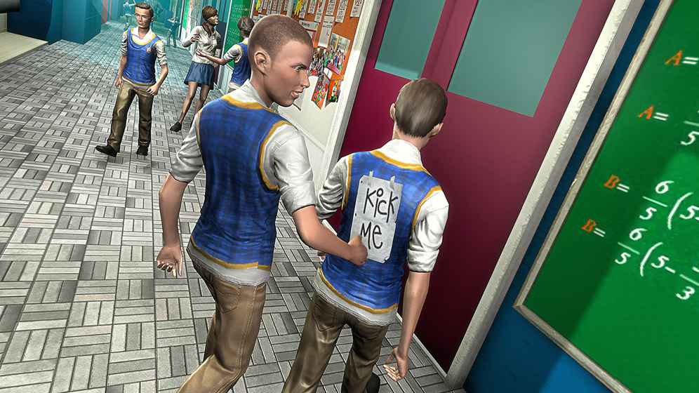 2、惊人的3D高中环境:精细建模的校园场景,包括教室、走廊、操场等区域,每个角落都充满细节;