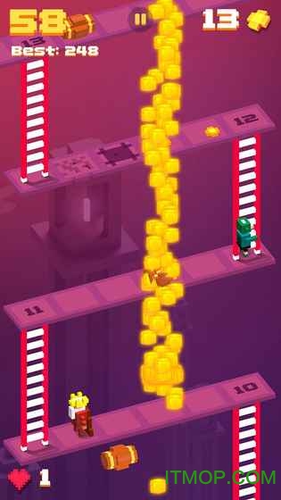 在这座危机四伏的像素之塔中,每个决定都关乎生死!一个错误的跳跃就可能让你坠入深渊,被突如其来的僵尸吞噬,或是被滚烫的岩浆淹没。游戏设定在神秘的午夜时分,玩家需要运用敏捷的身手和精准的判断,在错综复杂的塔楼结构中不断向上攀登。随着高度的增加,障碍物会变得更加刁钻,僵尸种类也会更加多样。收集沿途的金币和道具,解锁特殊能力,创造属于你的高分纪录。记住,在这座塔里,谨慎和勇气同样重要!