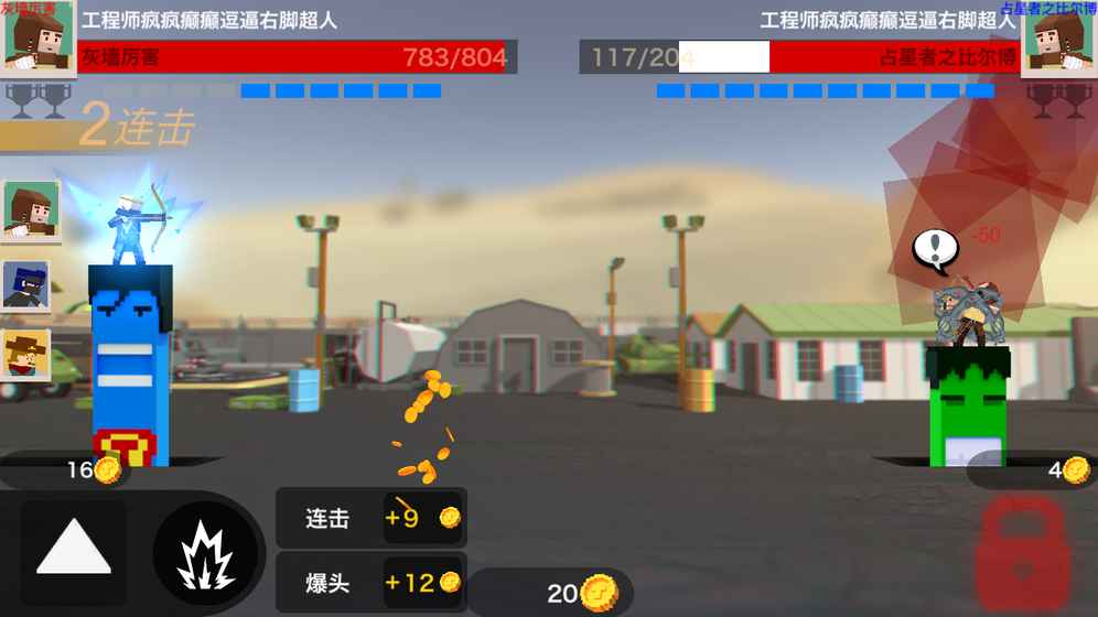 队伍人员必须是英雄级别的,这意味着每位角色都拥有独特的技能和战斗风格,玩家可以根据自己的喜好组建最强战队。各种武器都是免费领取使用的,从经典的近战武器到远程投射物应有尽有,让战斗方式更加多样化。柱子英雄最新版中每获胜一次就能获得赏金数目较大,丰厚的奖励系统让玩家可以不断升级装备和解锁新角色。此外,游戏还设有每日任务和成就系统,为玩家提供更多获取资源的机会。