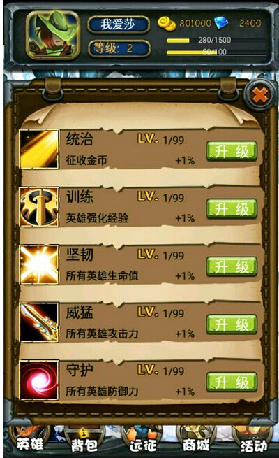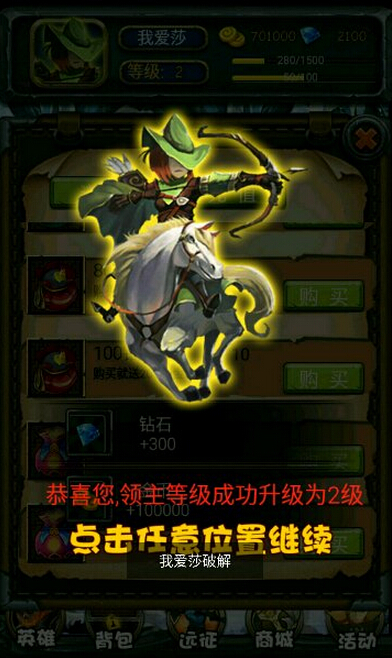 你可以通过战斗不断的提升骑士的等级,也可以试试自己的运气去招募更高星级的骑士来增强自己队伍的战斗力吧。