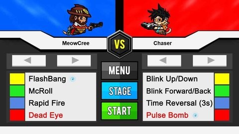 2、在单人游戏模式中,选择你的角色以及对手,即可开启一场激烈的对决;单人模式是熟悉英雄操作的绝佳场所,AI对手分为多个难度等级。建议从简单难度开始,逐步提升挑战难度,在这个过程中掌握每个英雄的技能释放时机。