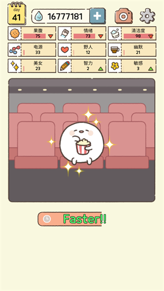 3、文化 画廊敏感+7智力+3果腹2情绪-8清洁-8 电影敏感+12智力+8果腹2情绪-8清洁-8 阅读敏感+13智力+6果腹-8情绪-8清洁-8 音乐会敏感+17智力+10果腹-8情绪-8清洁-8 文化活动是培养高智商细胞的必经之路。音乐会效果最佳但消耗也最大,适合在细胞情绪稳定时进行。注意及时补充食物和清洁,避免负面状态累积。