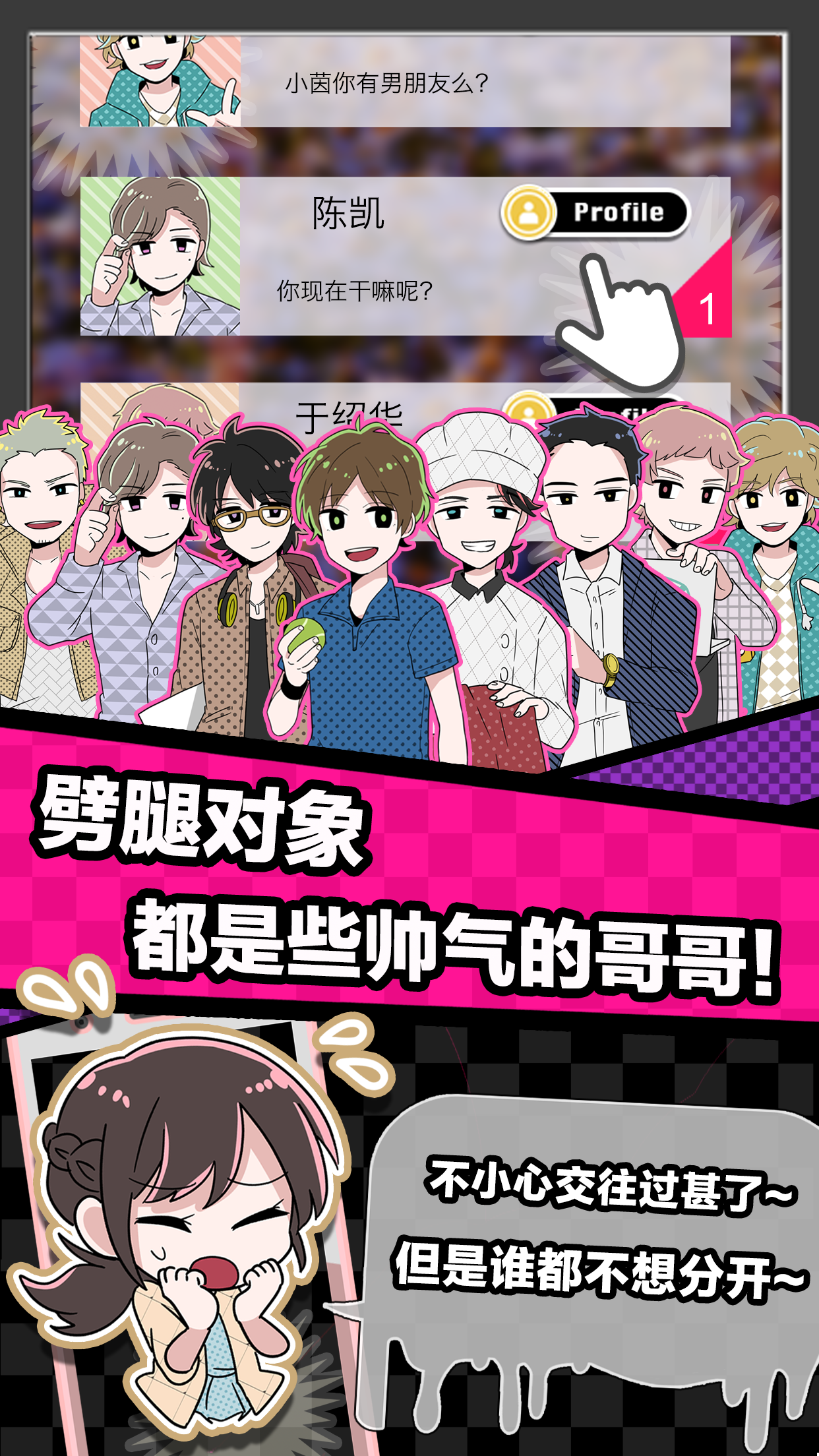 在这个充满谎言与真心的世界里,每个男友都有独特的性格和故事背景。你需要根据不同男友的特点,制定不同的相处策略。比如面对占有欲强的男友要格外小心,而对温柔体贴的男友则可以稍微放松警惕。游戏中的每个选择都会影响你与男友们的关系发展,稍有不慎就可能引发连锁反应,导致所有关系崩溃。你能在这场危险的爱情游戏中全身而退吗?