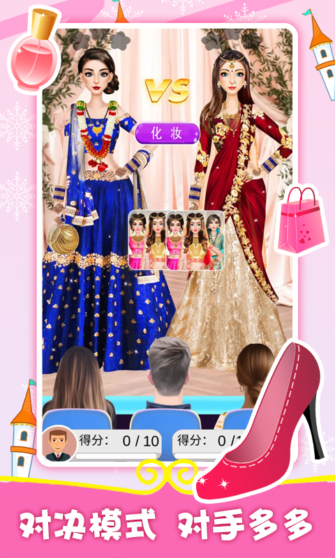 1、游戏设有精彩的PK对战模式,玩家可以借助精心挑选的饰品和服装,与其他玩家打造的新娘造型一较高下,用独特的时尚品味征服所有评委。