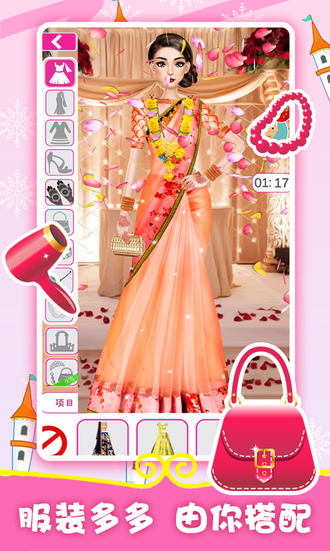 1、游戏拥有超丰富的服装库,包含数百种不同风格的服饰单品,从经典婚纱到潮流时装应有尽有,让玩家可以尽情发挥创意,打造独一无二的新娘造型。
