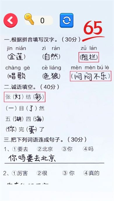 1、考验玩家的文字功底,能否熟练运用的地得等语文相关知识。游戏特别设计了语法专项训练,通过趣味填空、改错等形式,帮助玩家掌握这些易混淆字词的正确用法。