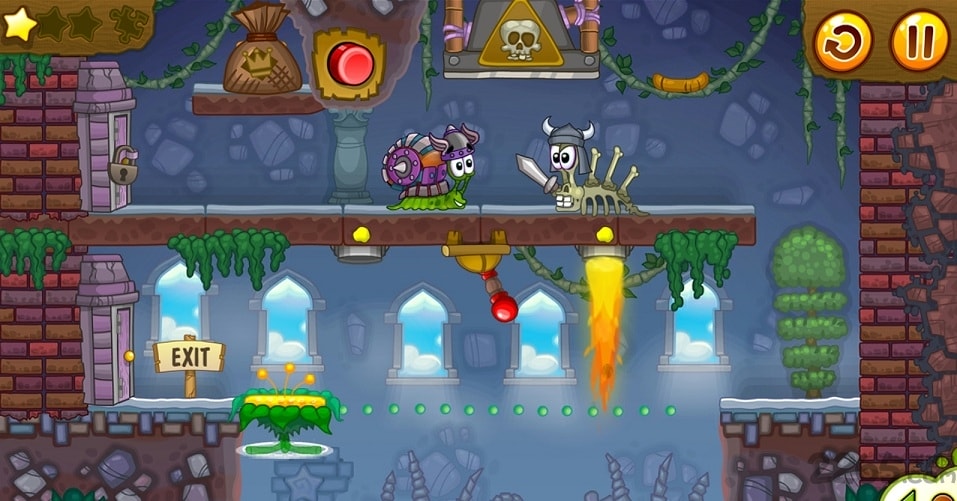 - 成功收集全部三颗星星后,关卡出口的大门会自动开启,这时引导蜗牛安全到达终点即可通关。