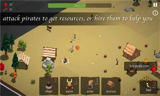 3、击败来袭的海盗可以获得额外资源,或者选择雇佣他们来增强村庄的防御力量。每次成功防御都会获得奖励,帮助你更快发展村庄。