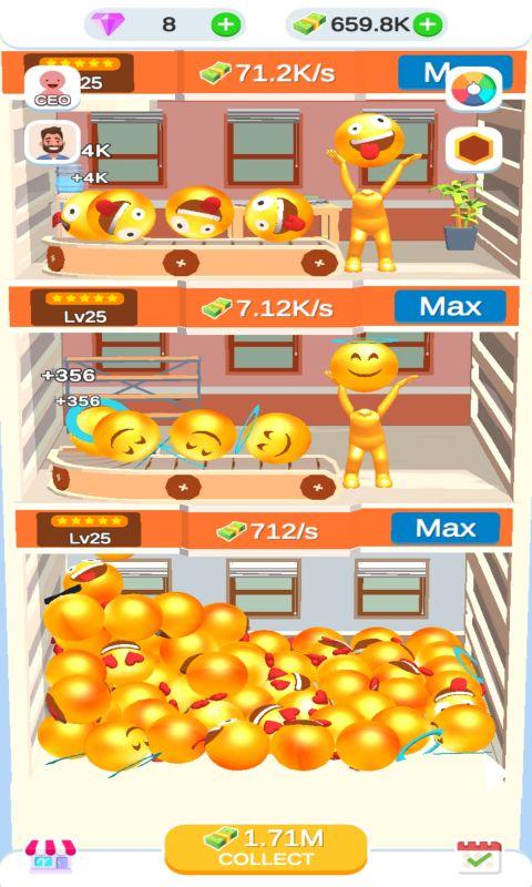 《放置表情工厂IdleEmojiFactory》是一款极具创意的经营模拟游戏,带你进入一个充满欢乐的表情包制造世界。在这个色彩缤纷的工厂里,你将负责管理表情包的生产线,从原材料加工到成品包装都需要精心规划。游戏收录了超过200种不同风格的表情包,包括时下流行的网络表情、经典emoji以及各种搞怪造型。随着工厂规模的扩大,你还能解锁特殊主题的表情系列,比如节日限定款、动漫联名款等。游戏采用直观的操作界面和渐进式的难度设计,让新手玩家也能快速上手,体验成为表情大亨的成就感。