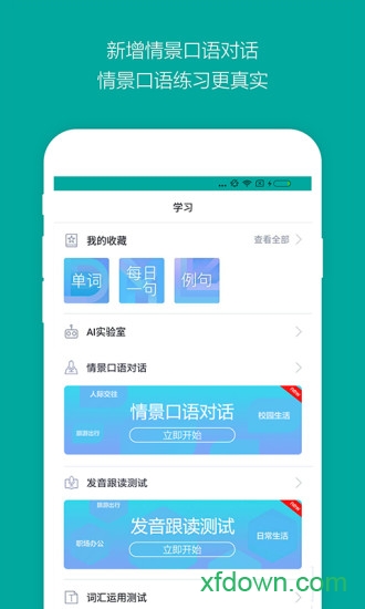 2.创新的"我爱说英语"口语练习功能,通过AI语音识别技术实时评分,帮助用户纠正发音,系统还提供多种实用场景对话练习,让口语学习更有针对性;