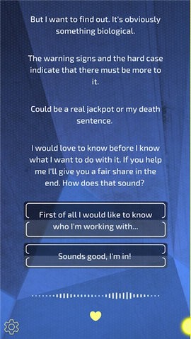 2.您的答复会带来巨大改变,随意一个决定都可能会对故事进程产生巨大影响。过纯文字对话来推动剧情,但是玩家手上的通讯器功能可不少。游戏中的每个选择都会产生蝴蝶效应,可能改变角色命运或解锁隐藏剧情。通讯器除了基本的对话功能外,还集成了地图、任务日志等多种实用工具。这种多分支的叙事结构让游戏具有极高的重玩价值,玩家可以通过不同选择体验完全不同的故事走向。