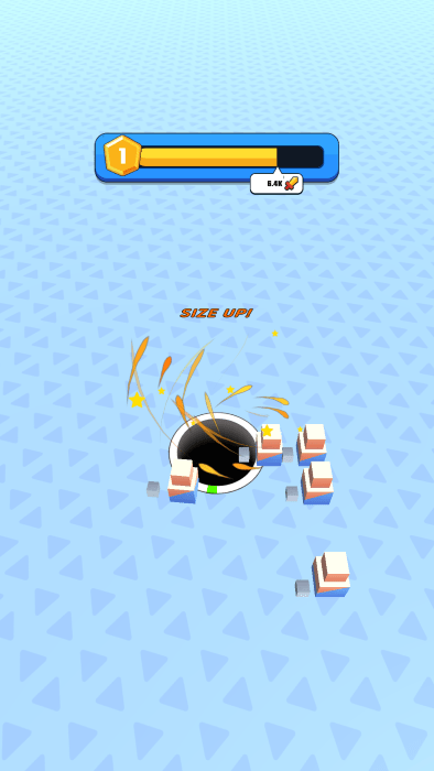 控制黑洞:拖动手指引导黑洞并吸收方块战士。操作简单但极具深度,需要玩家掌握精准的移动和时机判断。